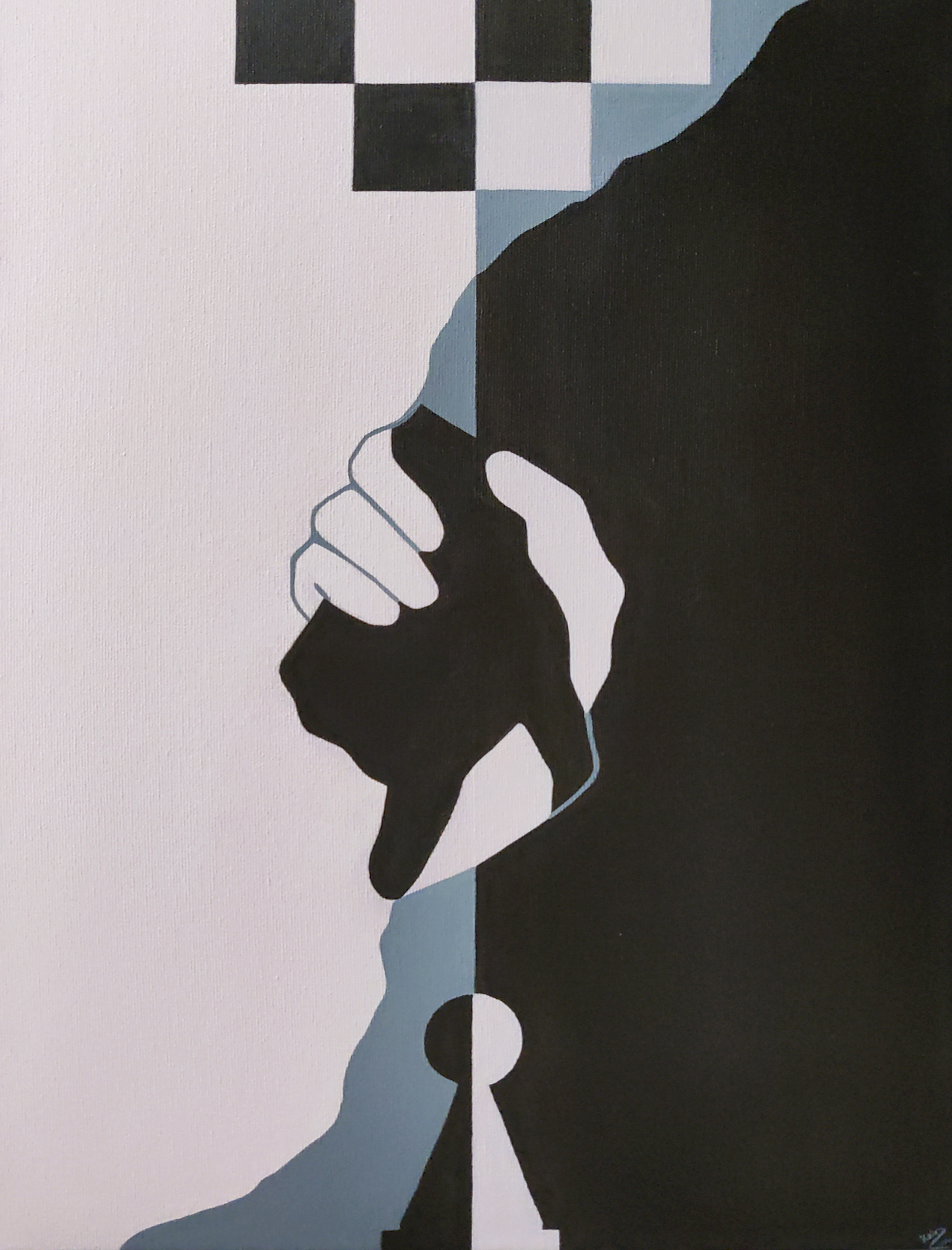 The Game is an original artwork that is part of the collection The Contact. It was exposed for the first time in Barcelona at 2020. The Game is a work inspired by the Black Lives Matter movement, which was brought about by the death of J. Floyd that occurred during the pandemic. This work reflects on racial contact and social class contact that is represented by two hands that, apparently, are at peace, but the reality is very different. The conflict is not resolved and persists worldwide. It is an infinite chess game of opposing players who are taking steps and nobody knows where. Racism exists no matter how much we pretend otherwise. The gray color is compressed and represents people without prejudice.