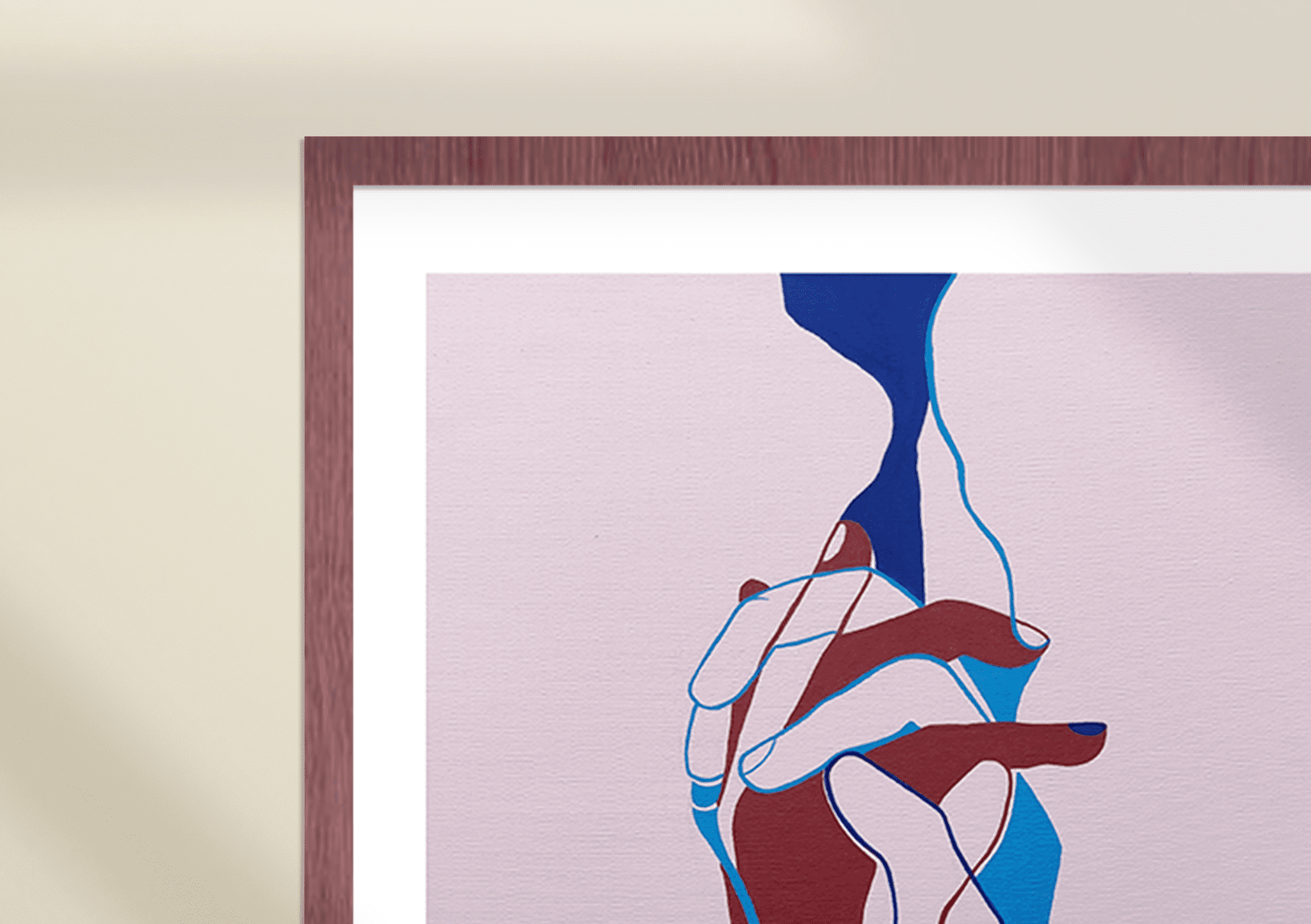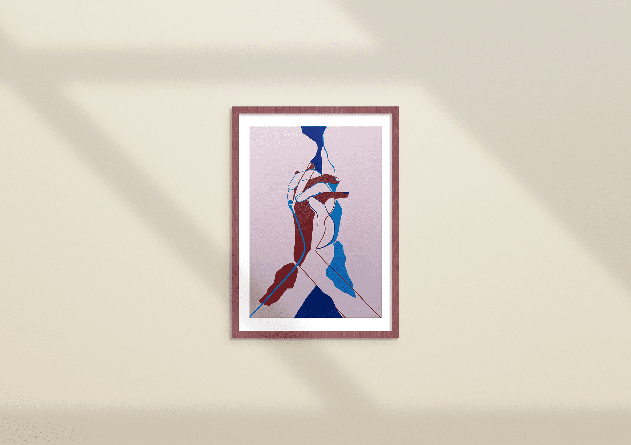 This print The Alliance is based on original artwork that is part of the collection The Contact. It was exposed for the first time in Barcelona at 2020. This painting is really powerfull because it has a direction from the bottom to the top. The same power like when you catch the hand of another person with all your energy and put your hands up together. It represents feelings of complicity, affiliation and loyalty.